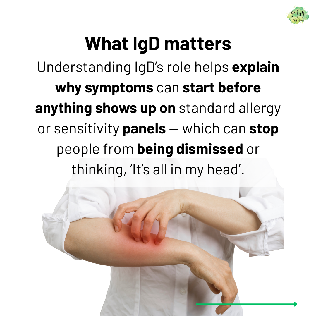 In terms of food sensitivities and allergies, we still have a lot to learn about IgD, but research suggests it can influence whether your immune system tolerates a food or becomes sensitised to it.