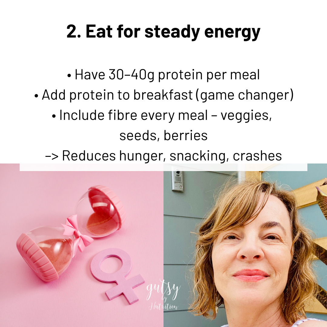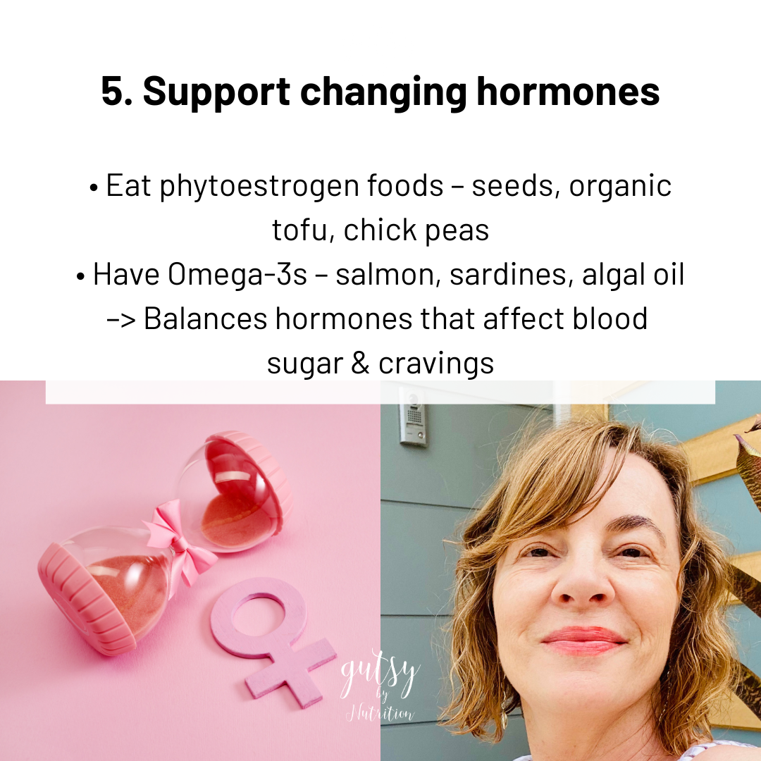 Support your shifting hormones – Food is powerful here. Small tweaks can massively improve belly fat, mood, metabolism, and hot flashes