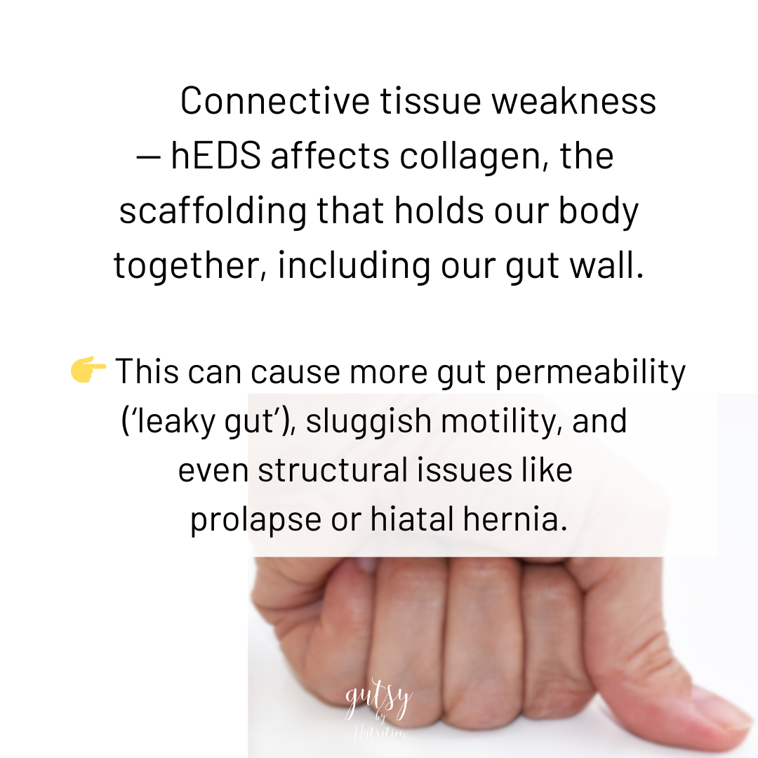 In hypermobile Ehlers-Danlos, the same collagen weakness that affects joints also impacts the gut wall, motility and structural integrity — leading to inflammation, mast cell activation, and even SIBO. This is my story, but it took me a long time to work out and get confirmation.