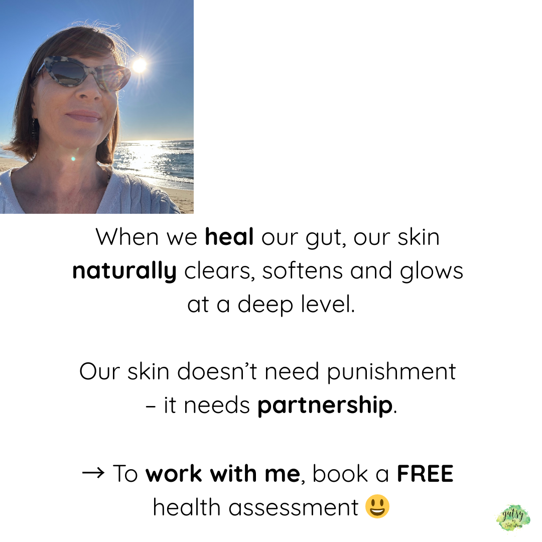 Once we rebuild our gut lining, feed the good bugs, rebalance the bad, and lower the internal fire, our skin finally calms down.