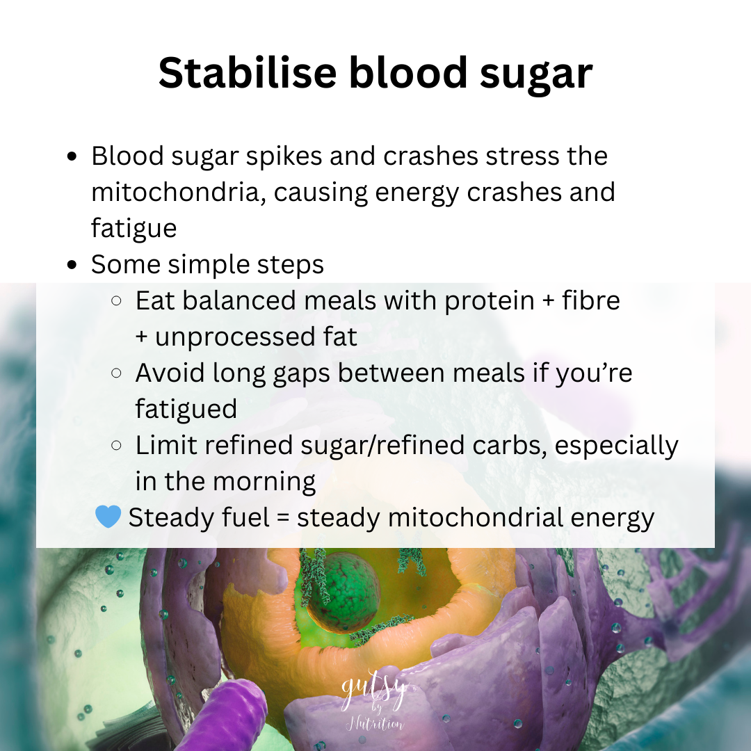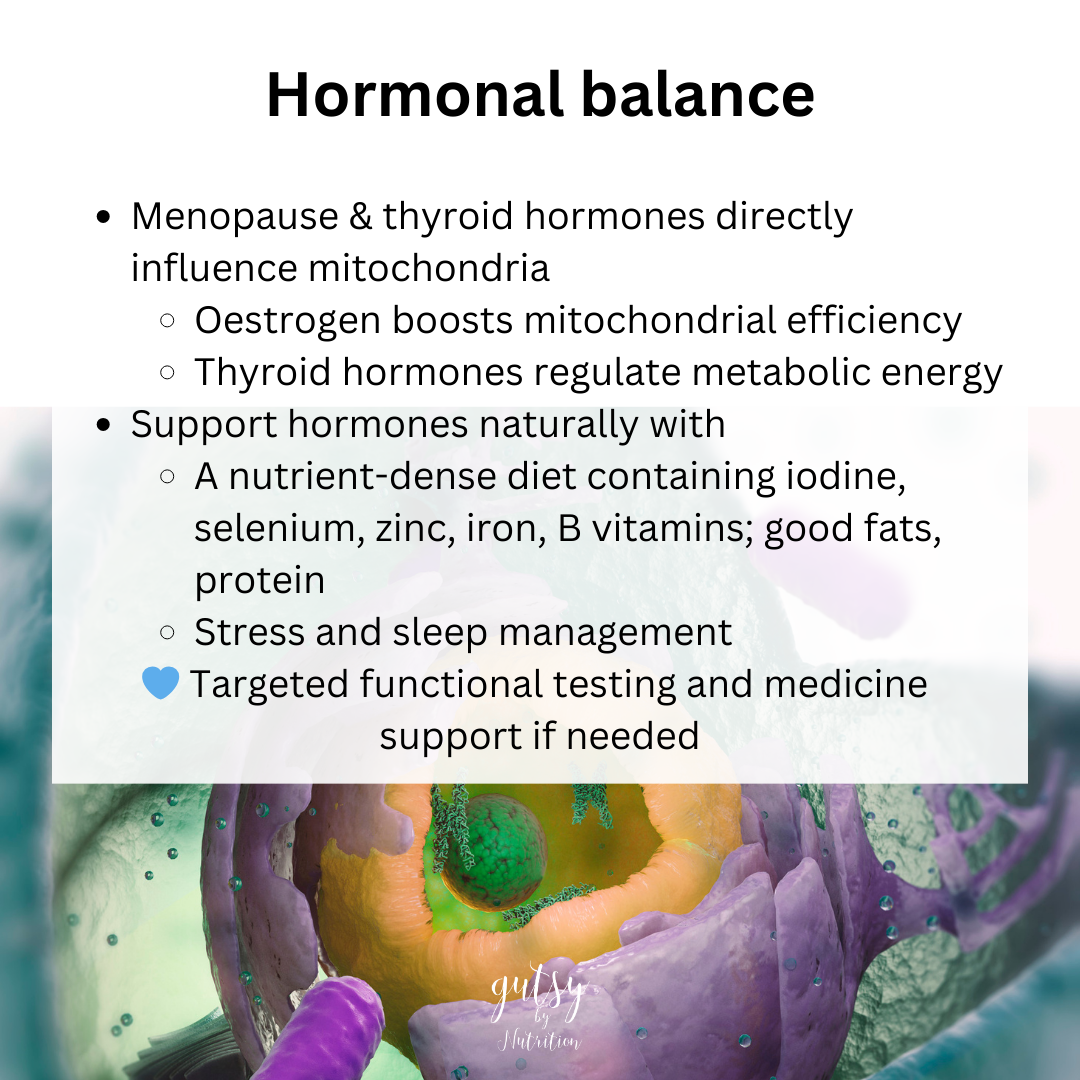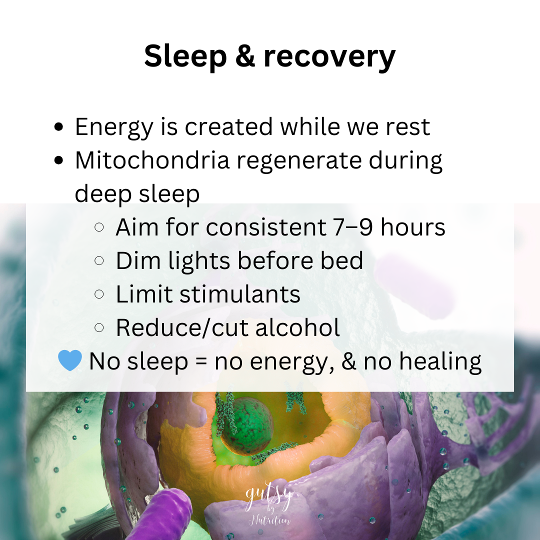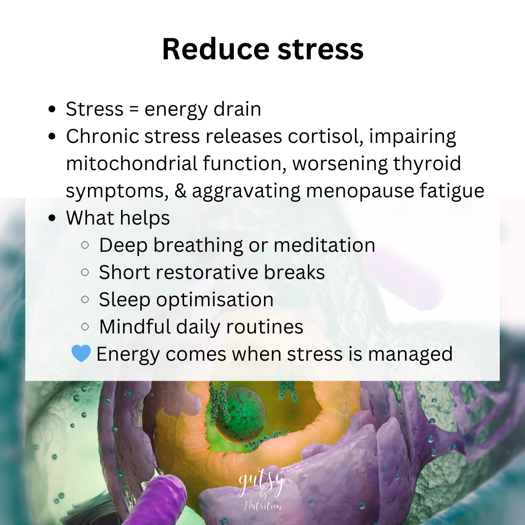 Start with steady fuel, gentle movement, stress management, sleep, and targeted nutrients. That’s how our energy truly comes back.