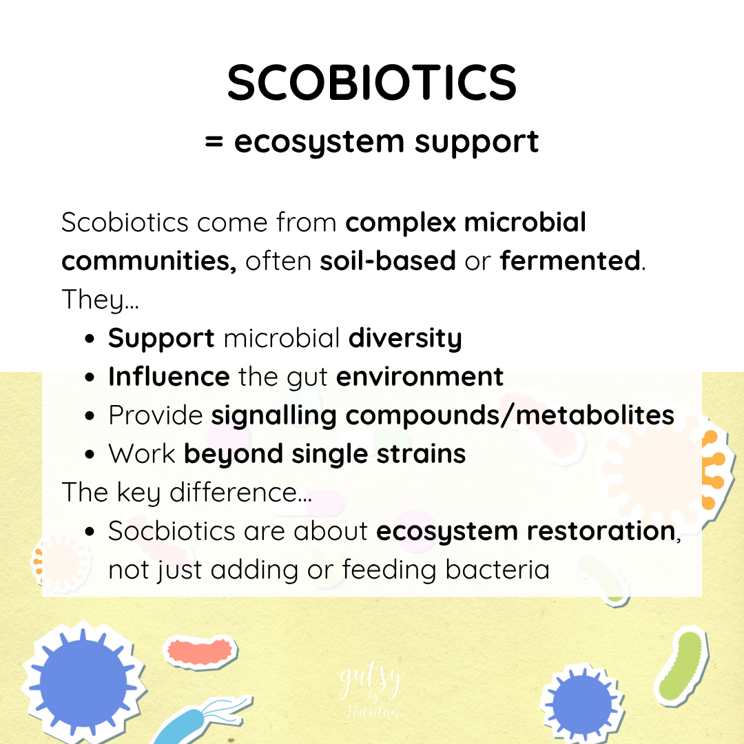 Prebiotics. Probiotics. Postbiotics. Synbiotics. SCObiotics.